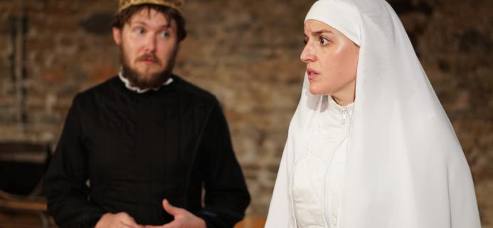Voici en quelques mots l’intrigue de Mesure pour Mesure que la metteuse en scène Lucile Lacaze adapte avec une radicalité assumée et aisissante. Elle opère une contraction brillante de la pièce, en la resserrant sur la violence que subissent et combattent les personnages féminins. Dans un espace nu, simplement traversé par quelques marques au sol figurant un palais ou une chambre, toute la théâtralité repose sur quatre interprètes virtuoses. Sur le fil, les comédien.nes maintiennent vive la tension permanente entre la cruauté des situations et le rire de la comédie. La netteté du geste théâtral fait apparaître dans toute leur puissance les lignes de force du texte, ainsi que les troubles et les contradictions des personnages.