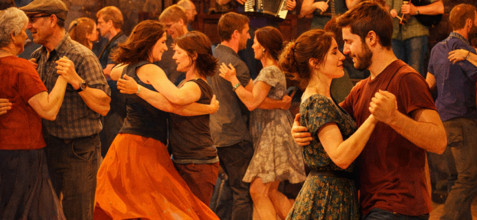 La Grabotte et Cie est un groupe de musique traditionnelle proposant des bals folks ludiques et joyeux. Ils sont accessibles à tous, du grand débutant au danseur chevronné. Portés par des airs venus de Bretagne, du Berry, d’Auvergne, d’Angleterre ou d’Italie, venez vous déhancher sur des danses collectives ou en couples. Les danseurs du Crêt de folk vous entraînent dans des cercles endiablés ! Le bal sera suivi d’un temps convivial pour déguster une soupe de saison.